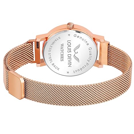 Be the first to review “LOUIS DEVIN Rose Gold Plated Mesh Chain Analog Wrist Watch for Women (Black/Blue/Rose Gold Dial) | RG162”